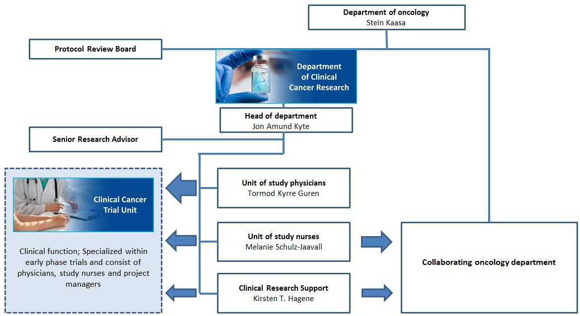 Clinical Cancer Trial Unit is located at The Norwegian Radium Hospital, and works closely with the service functions at the hospital. The main goal is to carry out clinical cancer studies, both with the help of the pharmaceutical industry and by our own researchers, of good quality and at the agreed time.